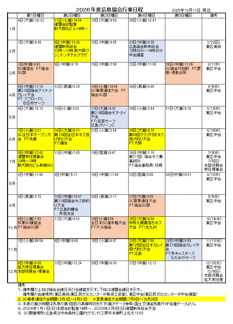 広島協会並びに、えのみやサーフの行事予定です。